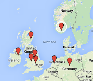 Here is a pinpoint map of the Cumberlands that are 458.2 negative. They're expected to be the slightly older group as one of their men originated the 458.2 and all the 458.2 plus men inherit that from him. You'll see that I highlighted one there in Norway. That is a new testers since 2013. My old map skirted Denmark and only included the Netherlands and Germany on the continent.